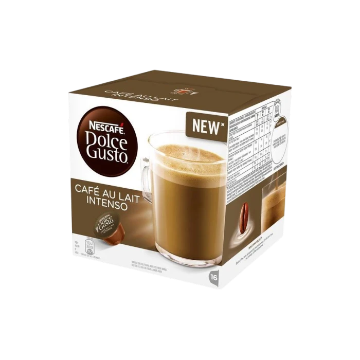 Nescaf Dolce Gusto Café au Lait Intenso doos met 16 capsules waarmee je 16 kopjes koffie met melk kunt maken.