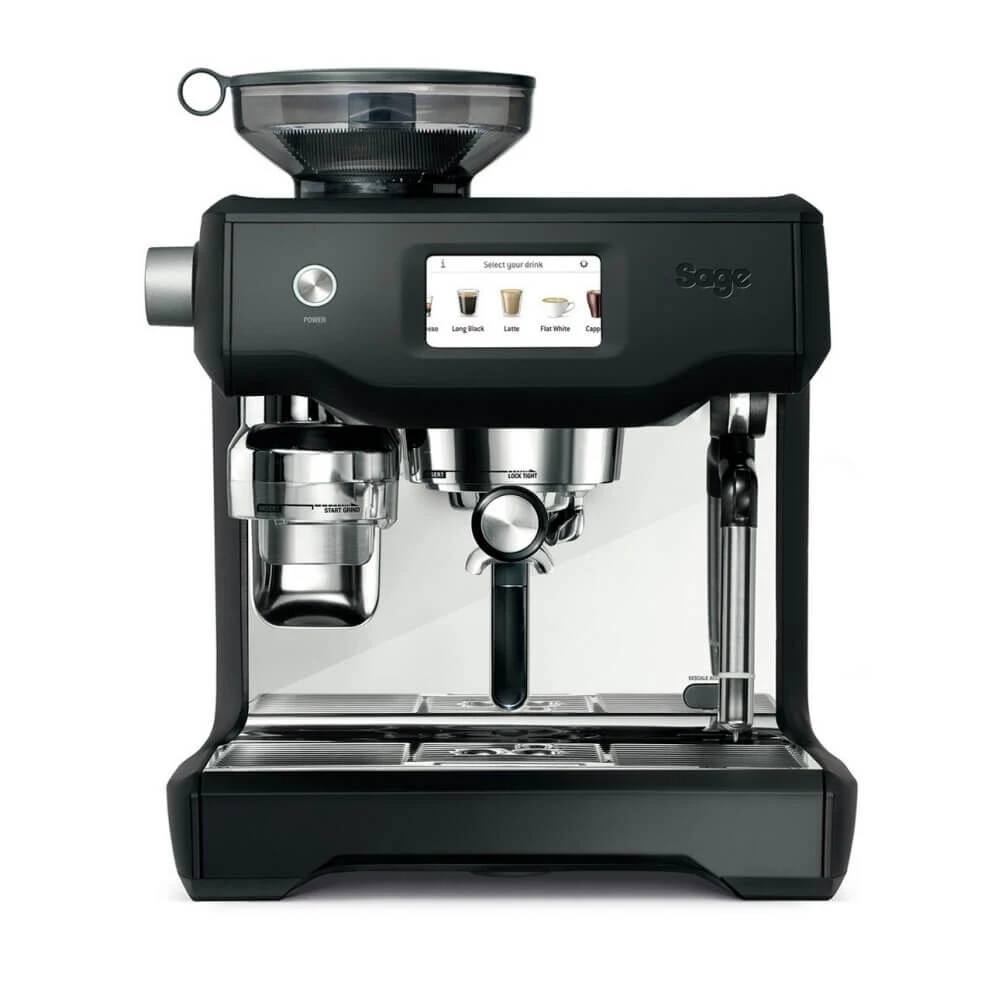 De Sage The Oracle Touch espressomachine is een volautomatische espressomachine, voorzien van een ingebouwde bonenmaler met conisch maalwerk. De espressomachine is eenvoudig te bedienen dankzij het grote touchscreen met 5 voorgeprogrammeerde koffiebereidingen. U heeft de mogelijk om nog 8 drankjes toe te voegen als automatische programma’s.